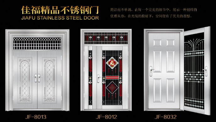 本公司成立于2004年,已有19年的生產進戶門的經驗積累。公司現擁有鋼質非標門生產線、標門生產線及不銹鋼門三條生產線,我公司專業設計、制造、銷售鋼質系列進戶門、防盜門、不銹鋼門等產品,擁有“宇佳?盈福”和“佳有福”、“家福.興隆”三個自主品牌和產品系列。公司引進了先進的生產技術,配置了成龍配套的現代化生產流水線。產品工藝成熟,質量上乘。同時,公司廣納賢才,聚集了一批具有開拓創新精神的各類高級管理和技術人才,建立了一套先進的管理模式。